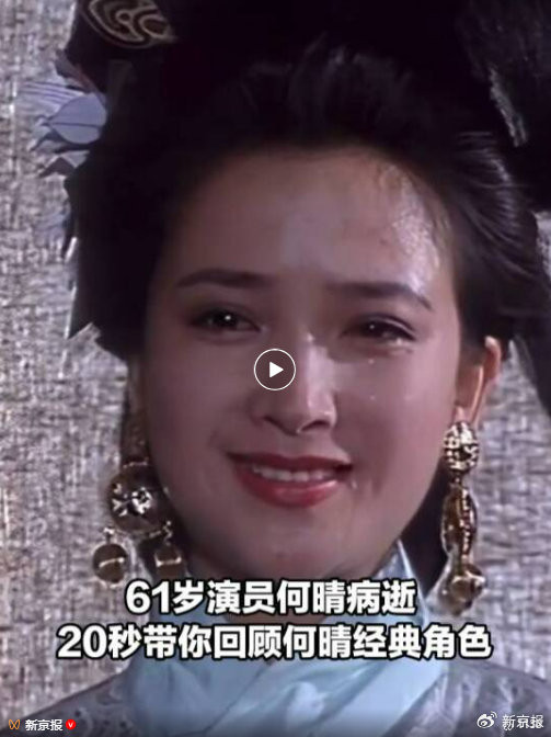 据新京报综合报道,12月13日,著名演员何晴家属发布讣告显示,何晴在北京安然离世,享年61岁。六小龄童、马德华等演员发文或接受采访表示悼念。